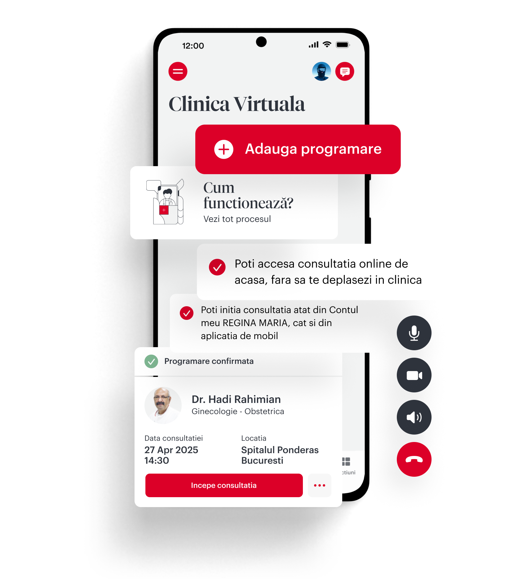 Vei putea accesa oricând detaliile consultațiilor, investigațiilor și analizelor, atâta timp cât nu renunți la contul tău. Aceleași informații sunt disponibile în aplicația Contul meu REGINA MARIA și pe https://contulmeu.reginamaria.ro/.