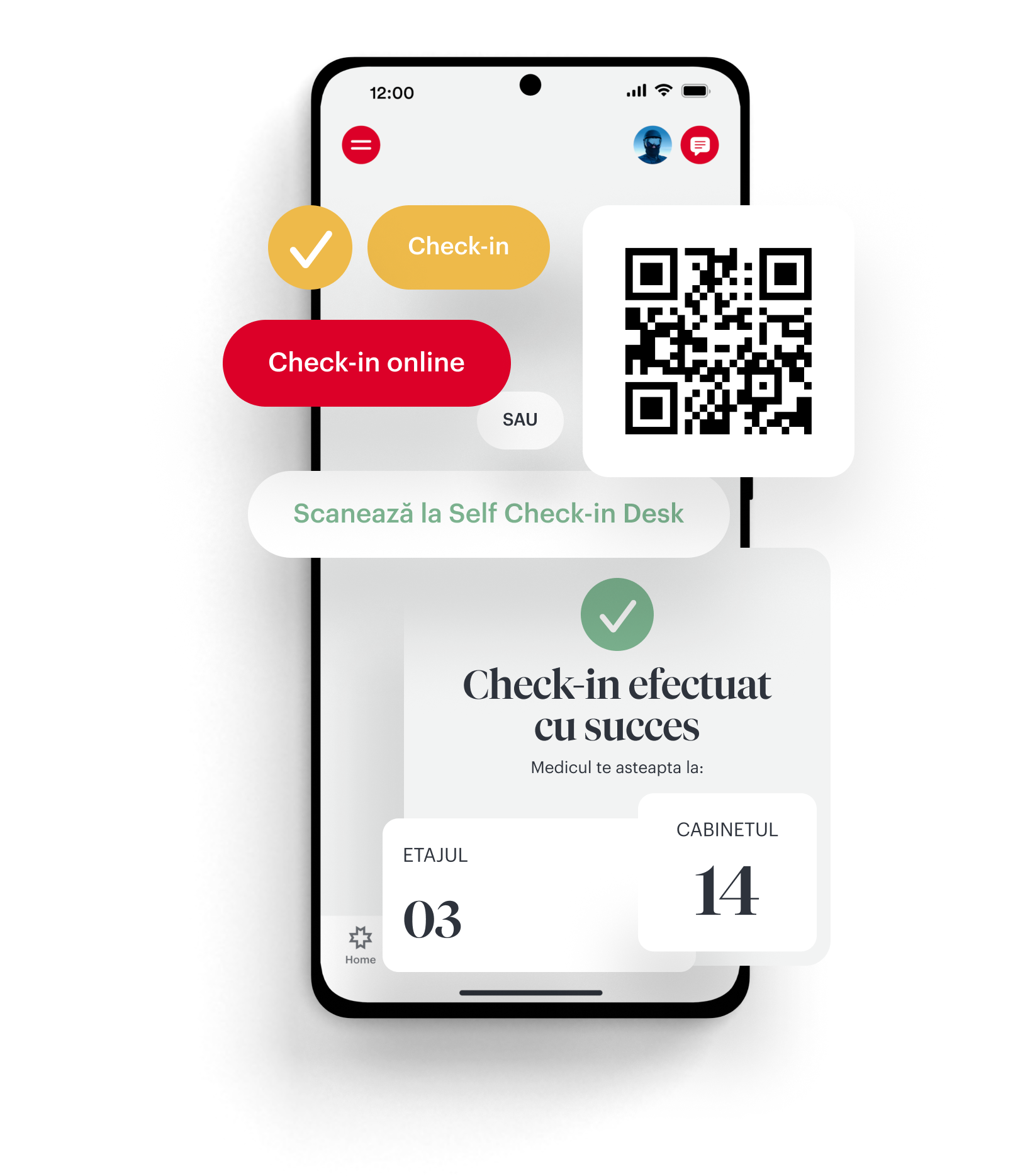 Fara sa mai treci pe la receptie. Intra in “Programari” si apasa “check-in” pentru a afla rapid etajul si cabinetul.