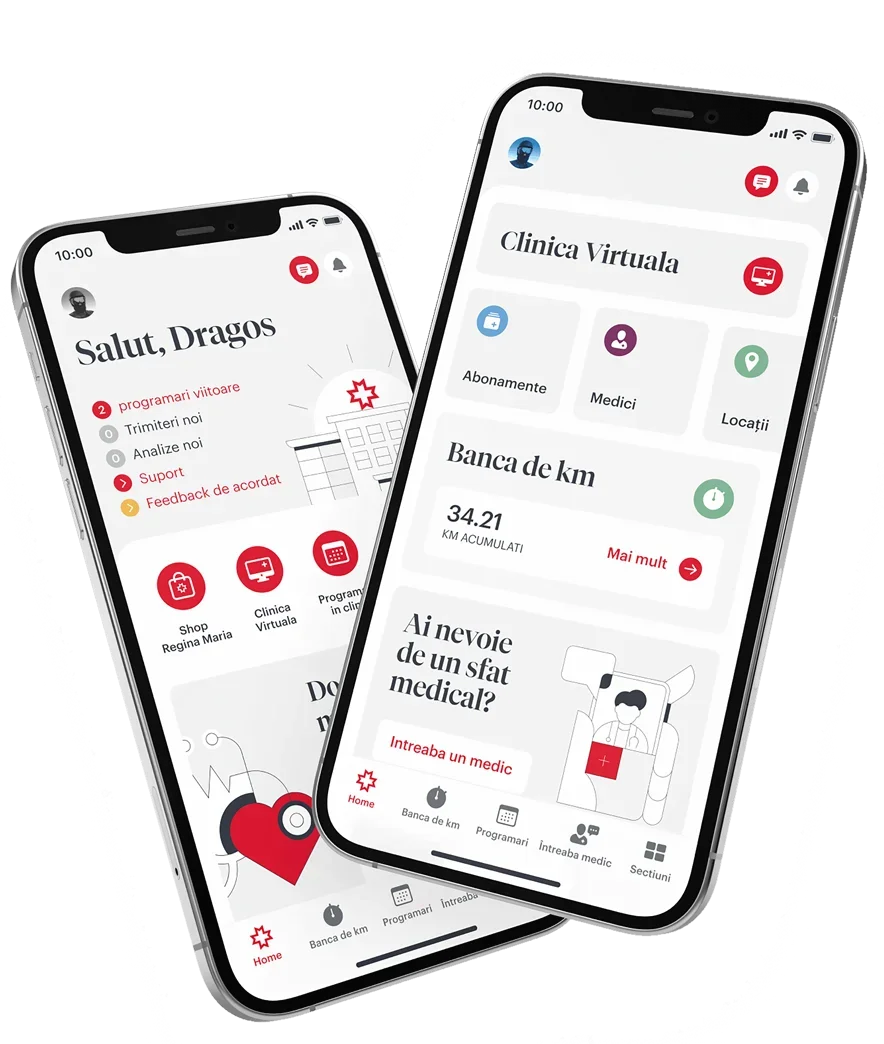 Prin Contul tău, atât din aplicația mobilă Regina Maria, cât și din browser, te poți programa la medic, la orice oră din zi sau chiar din noapte. În acest fel, nu depinzi de programul din Contact Center și nici nu mai este nevoie să îți amintești a doua zi să faci programarea. O poți face instant, atunci când găsești două minute libere.