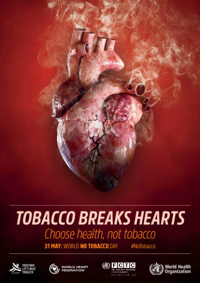 In fiecare an, data de 31 mai marcheaza Ziua Mondiala fara Fumat, eveniment initiat de Organizatia Mondiala a Sanatatii in parteneriat cu alte foruri internationale. Anul acesta, mesajul-cheie al campaniei este axat pe riscurile consumului de tutun asociate cu bolile cardiovasculare– “Fumatul si bolile de inima”.