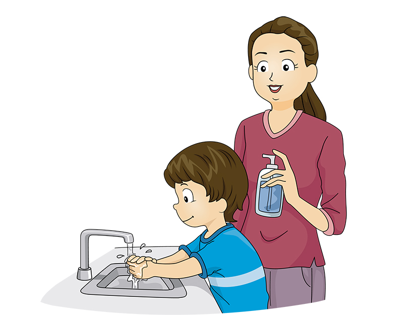 Spalatul corespunzator se face folosind simplu apa si sapun. Daca la scoala acest lucru nu este posibil, poate sa foloseasca dezinfectant de maini pe baza de alcool, care nu necesita apa.