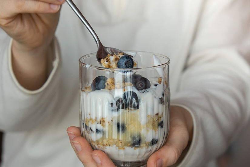 - Iaurt cu semințe de chia: Ideal pentru micul dejun sau gustare. Iaurtul oferă proteine și calciu, iar semințele de chia adaugă fibre, omega-3 și antioxidanți.