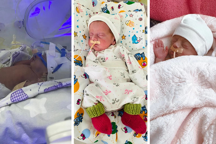 Sarcina a evoluat pana in saptamana 29, cand a urmat o noua provocare: fetitele s-au nascut prematur, avand la nastere 800 de grame. Medicii de la Institutul Mamei si Copilului din Chisinau au decis ca fetele sa se nasca prin cezariana, deoarece se aflau in suferinta fetala, iar transfuziile nu ar mai fi fost suficiente. Pentru parinti, au urmat 2 luni de agonie si speranta, cat timp fetitele au fost ingrijite in Terapia Intensiva Neonatala.