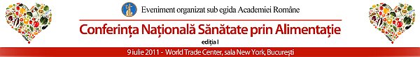 Pe 9 iulie 2011, în Bucureşti, la World Trade Center, va avea loc cel mai important eveniment organizat în România dedicat managementului alimentaţiei sănatoase: Conferinţa Natională Sănătate prin Alimentaţie-ediţia I.
