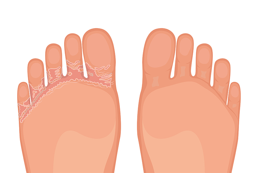 - Zone de piele crapata, basicata sau care se cojeste, in special intre degetele picioarelor
