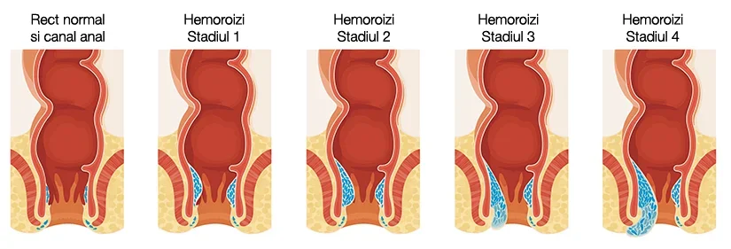 - gradul 4 - dureri cvasipermanente, sangerari si inafara efortului de defecatie