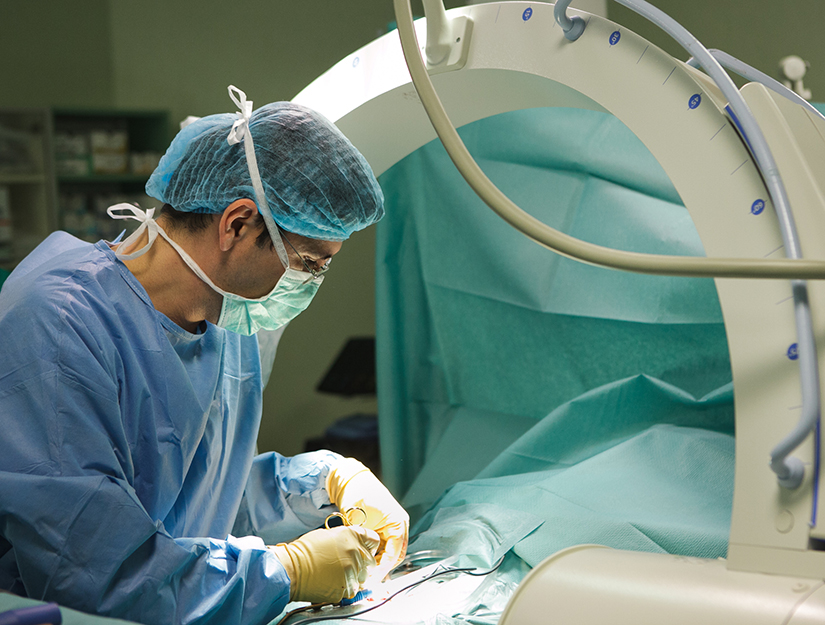 - In ziua interventiei, vei fi imbracat intr-un echipament steril si vei fi condus la o sala de radiografie sau la o sala de operatie; vei fi rugat sa te intinzi confortabil cu fata in jos, pe masa chirurgicala captusita unde se va efectua procedura.