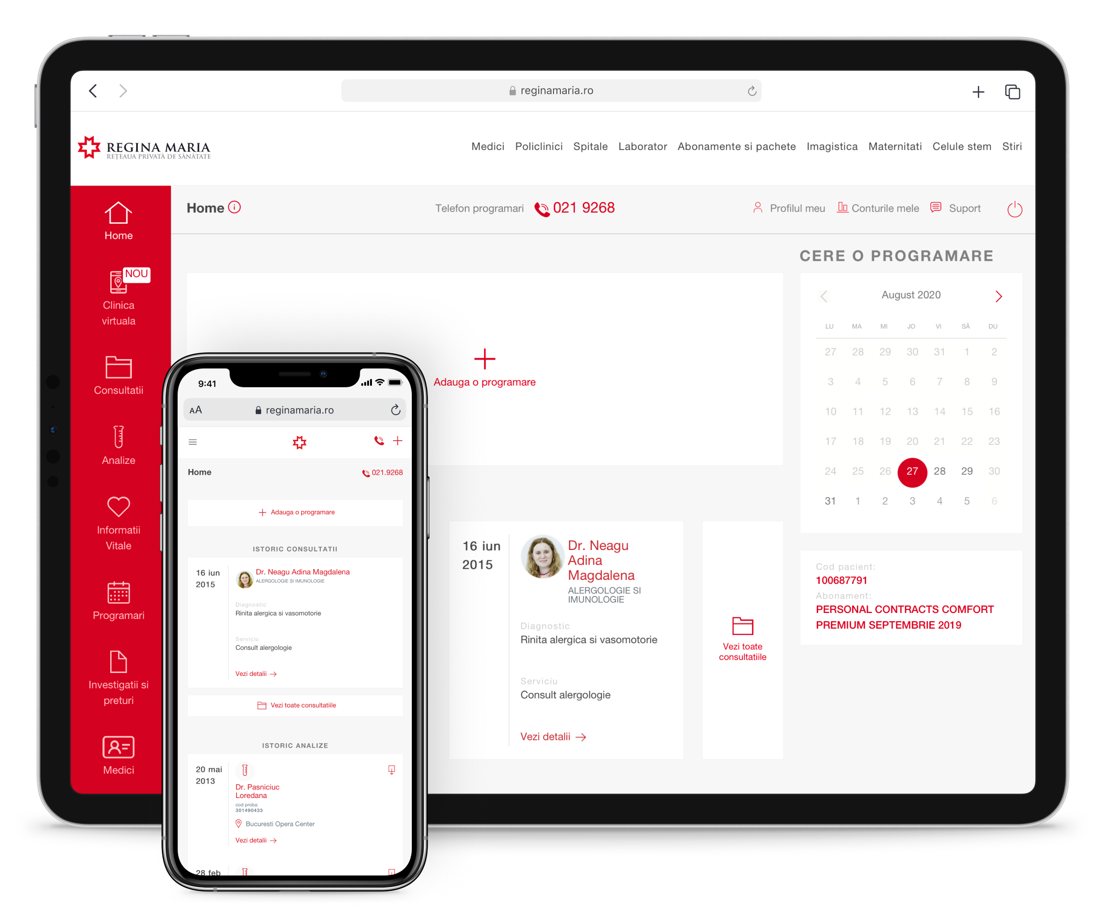Verifici istoricul consultatiilor, descarci raportul medical si urmaresti evolutia analizelor.