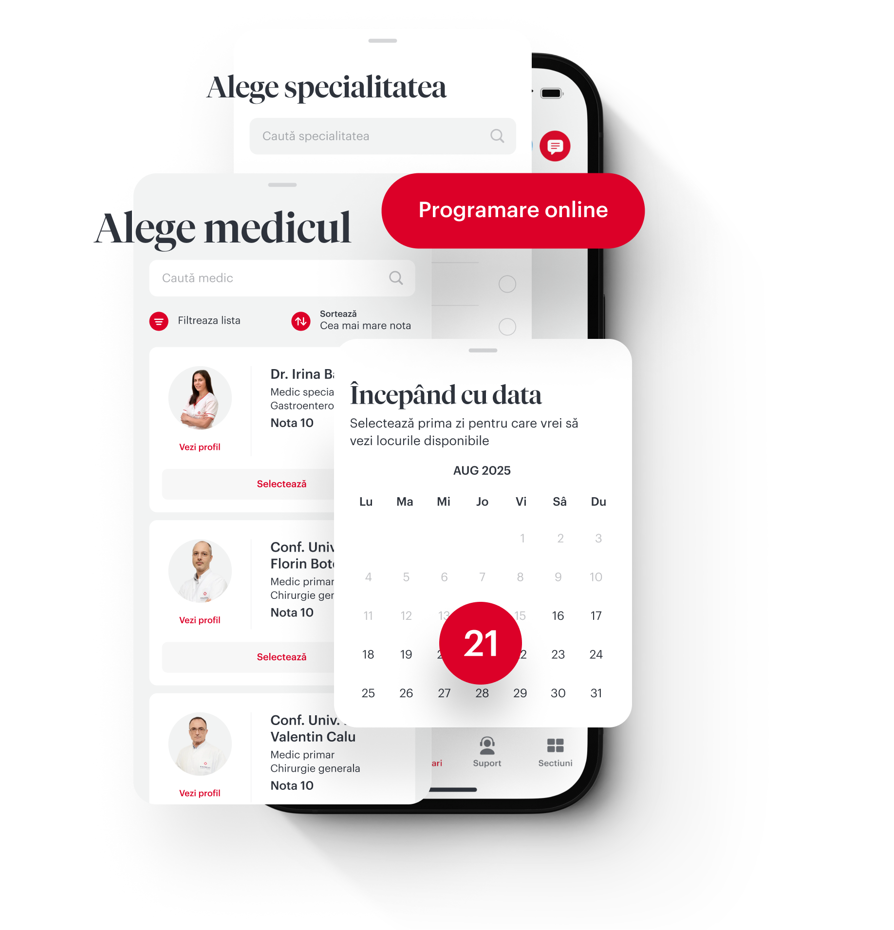 Te poti programa din aplicație pentru serviciile incluse in trimiterea pe care o primești de la medic.