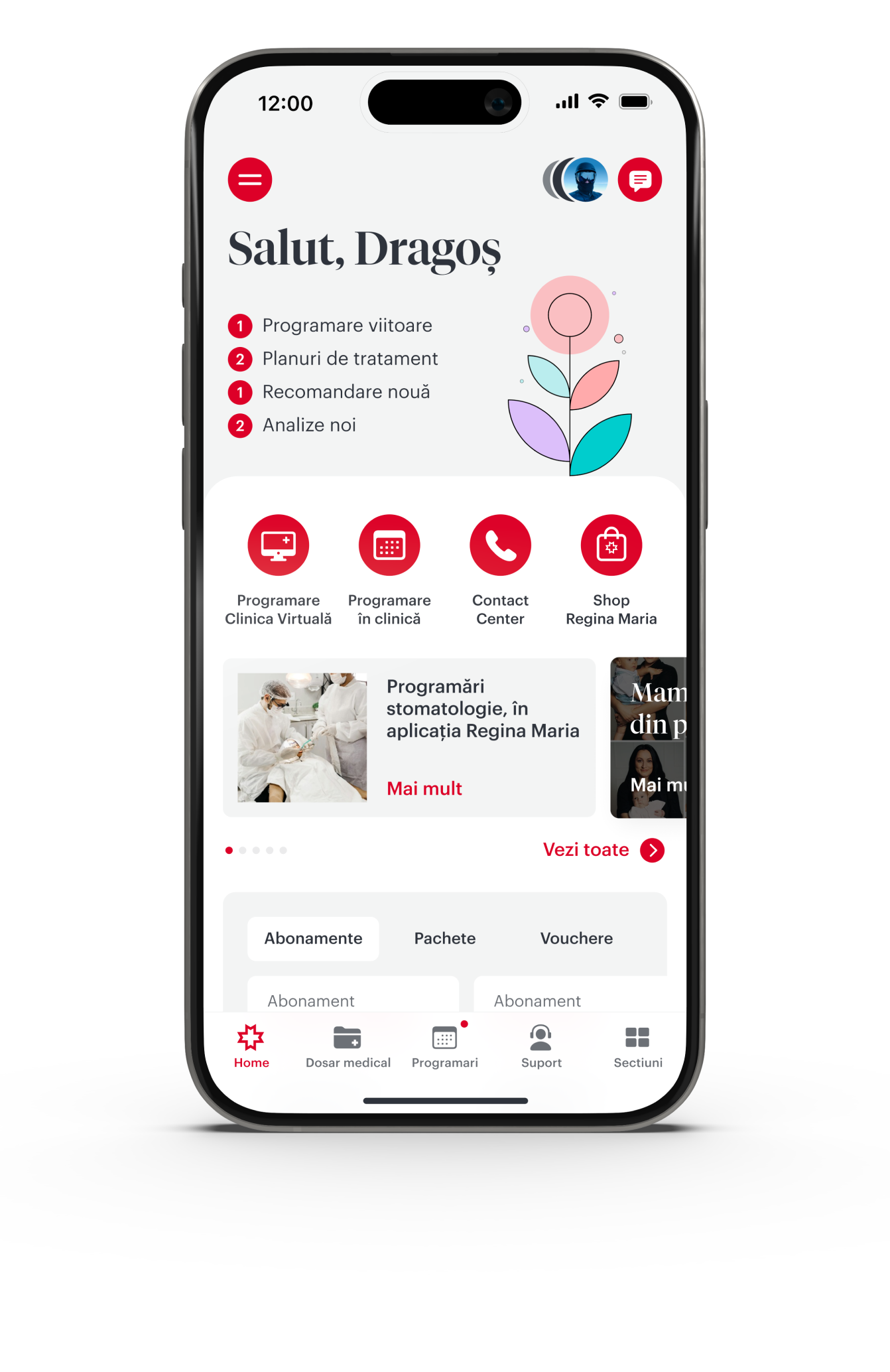 Poți accesa contul copiiilor direct din Contul meu REGINA MARIA. Vei avea acces la Dosarul medical complet și îl vei putea programa direct în aplicație.