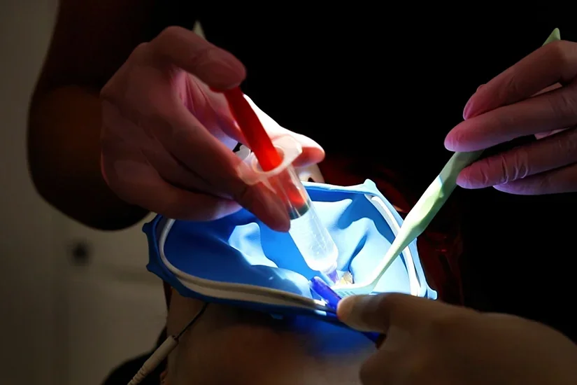 - Albirea dentară. În anumite cazuri, atunci când se efectuează albirea dentară, diga protejează gingiile și țesuturile moi de contactul cu substanțele chimice folosite în procesul de albire;