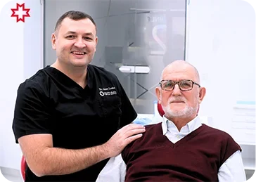 "Mă confruntam cu dinți lipsă, dificultăți de masticație și probleme de vorbit în public, iar cu ajutorul intervenției chirurgicale fast&fixed pentru partea inferioară acum pot să mănânc foarte bine. Sunt foarte mulțumit și recomand tuturor să vină pentru calitatea serviciilor și a materialelor folosite."