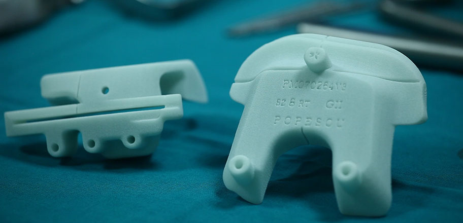 Se simuleaza toate deciziile terapeutice importante si se studiaza anatomia specifica pacientului. Dupa aceasta, se construiesc prin printare 3D instrumente personalizate care functioneaza numai pentru pacientul respectiv si care au inscriptionat pe ele numele acestuia. Aceste blocuri de taiere, produse dintr-un material plastic de uz medical, vin sterile din SUA. Cu ajutorul lor se implanteaza proteza, astfel incat se poate spune ca proteza este personalizata la anatomia individuala.