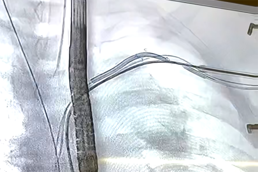 Mai jos este o imagine a sondei extrase cu succes ilustrand calcificarile si fibrioza dezvoltata in jurul sondei fraturate.