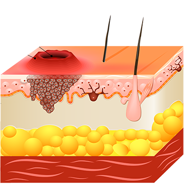 Cancerul de piele incepe in stratul superior al pielii - epidermul. Epidermul este un strat subțire care asigura un inveliș protector al celulelor pielii pe care corpul il exfoliaza continuu. Epiderma conține trei tipuri principale de celule: