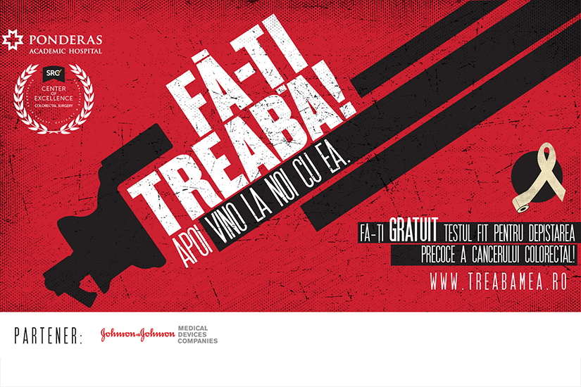 Testul imunochimic fecal FIT reprezinta o metoda de screening non-invaziva importanta si eficienta. Acesta determina daca exista sangerari oculte (hemoglobina) in scaun - marker pentru anumite afectiuni intestinale, precum diverticuli, polipi, cancer colorectal. Simplu si usor de facut, testul FIT ofera un rezultat cantitativ relevant medical, care poate indica necesitatea unor explorari endoscopice complexe. 3000 de astfel de teste vor fi distribuite in mod gratuit in cadrul campaniei "Treaba ta e treaba noastra", cu ajutorul partenerului Johnson & Johnson Medical Devices Companies.