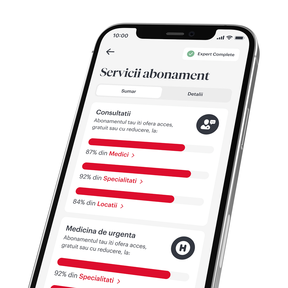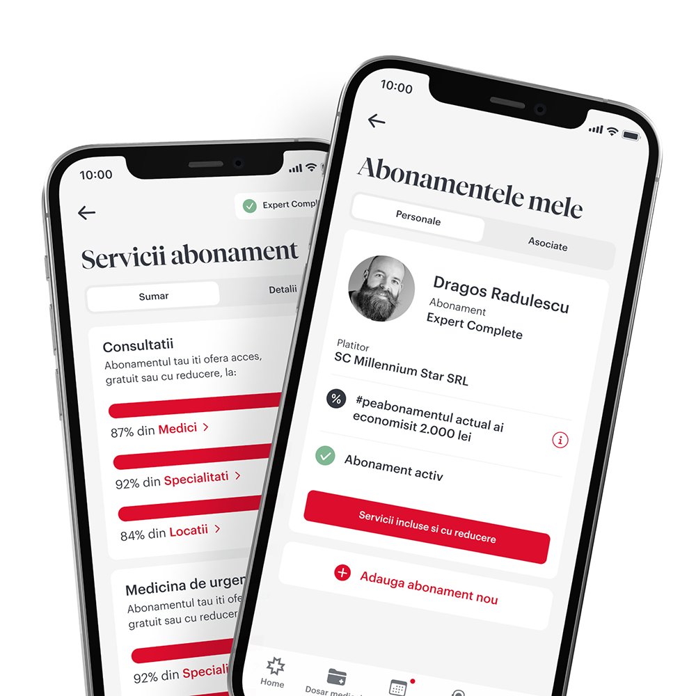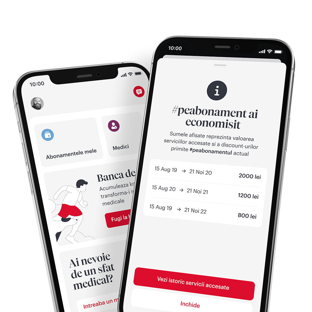 De 26 de ani ne straduim sa aducem mai aproape cele mai bune servicii si sa-ti oferim acces la medici si clinici in care excelenta medicala intalneste profesionalismul si tehnicile de ultima ora. Prin detaliile despre abonamente pe care le gasesti in aplicatie ai siguranta ca stii mereu care e starea abonamentului tau si ce servicii ai incluse si cu reducere, ca sa stai fara griji.