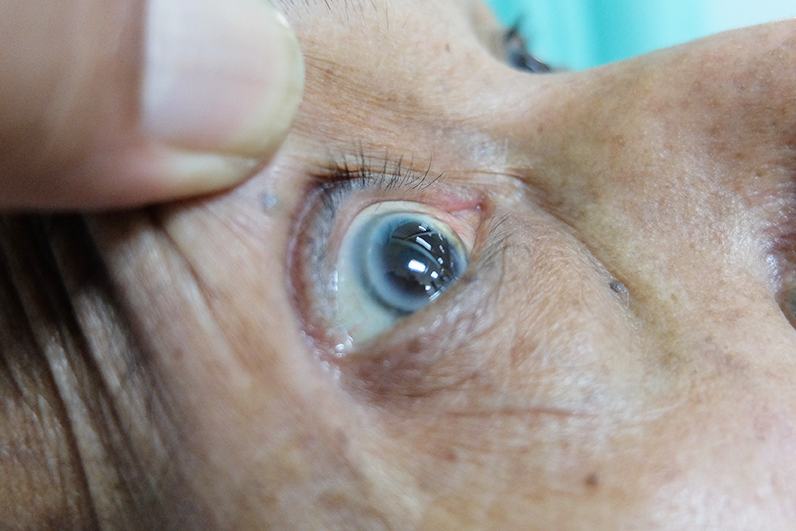 Arcul cornean sau arcul senil este un inel alb sau gri-albăstrui în jurul irisului și poate indica colesterol și trigliceride mărite, deși la persoanele în vârstă poate fi normal.